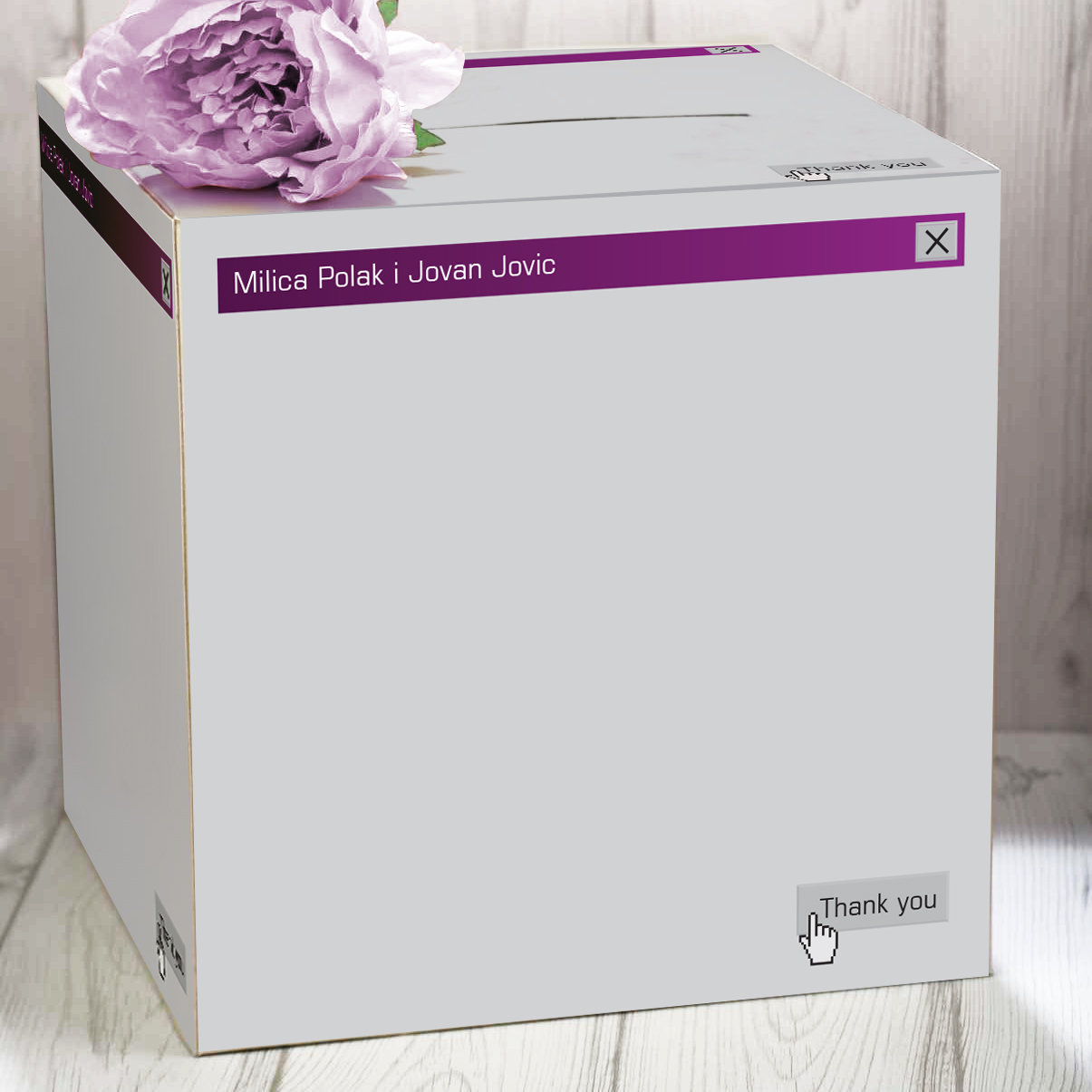 • dimenzija 30x30x30cm, pvc folija jednostrano štampana kaširana na hromokarton, prosecanje otvora za koverte