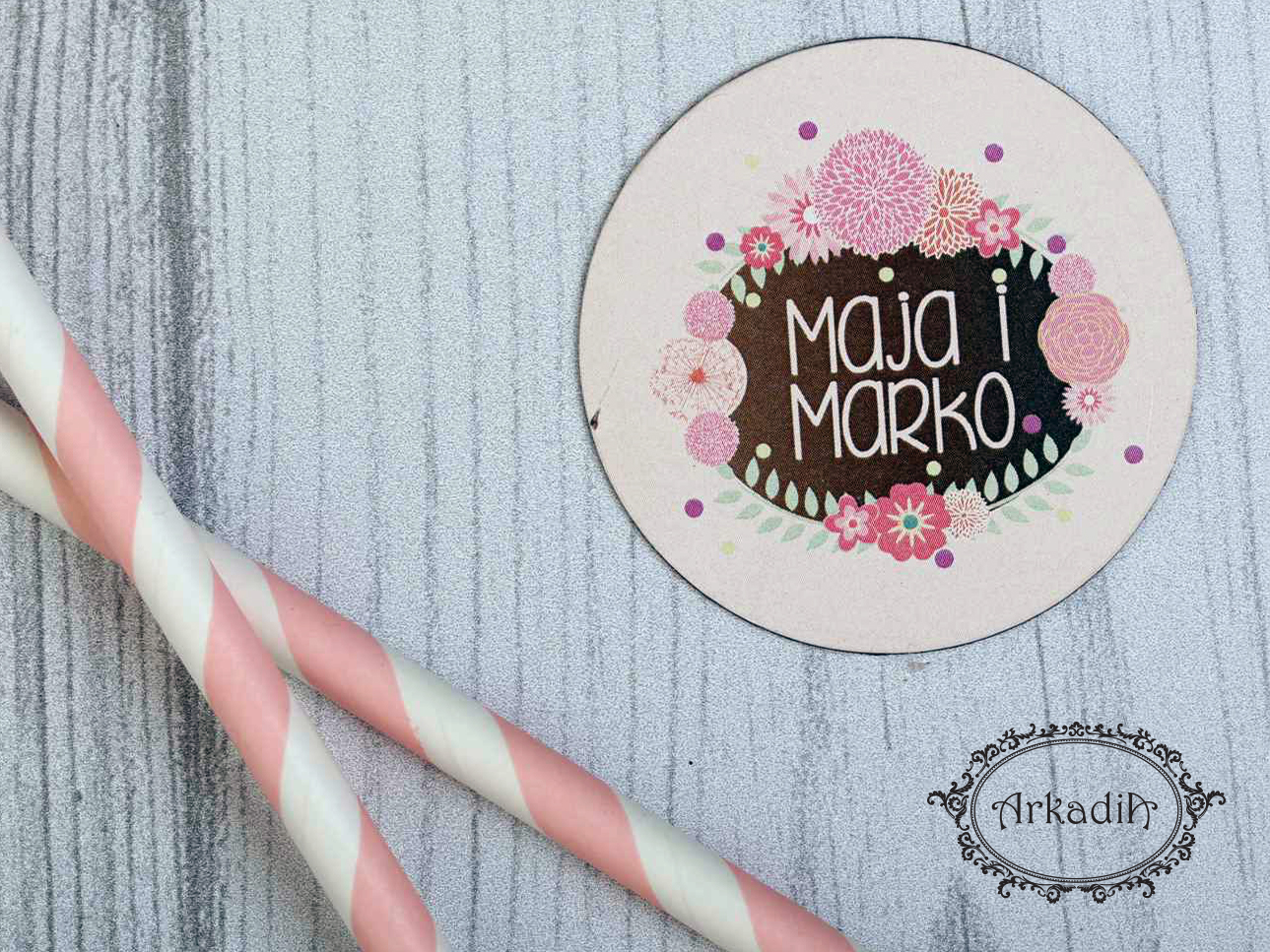 • dimenzija R5cm, krivolinisko sečenje, , štampa na magnetnoj PVC foliji 0.5 mm, u organdin kesici