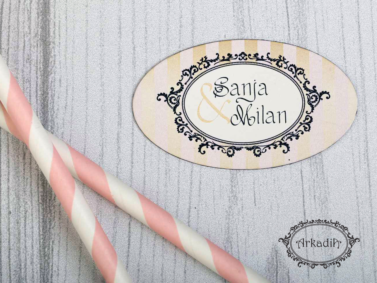 • dimenzija 6x3cm, krivolinisko sečenje,, štampa na magnetnoj PVC foliji 0.5 mm, u organdin kesici