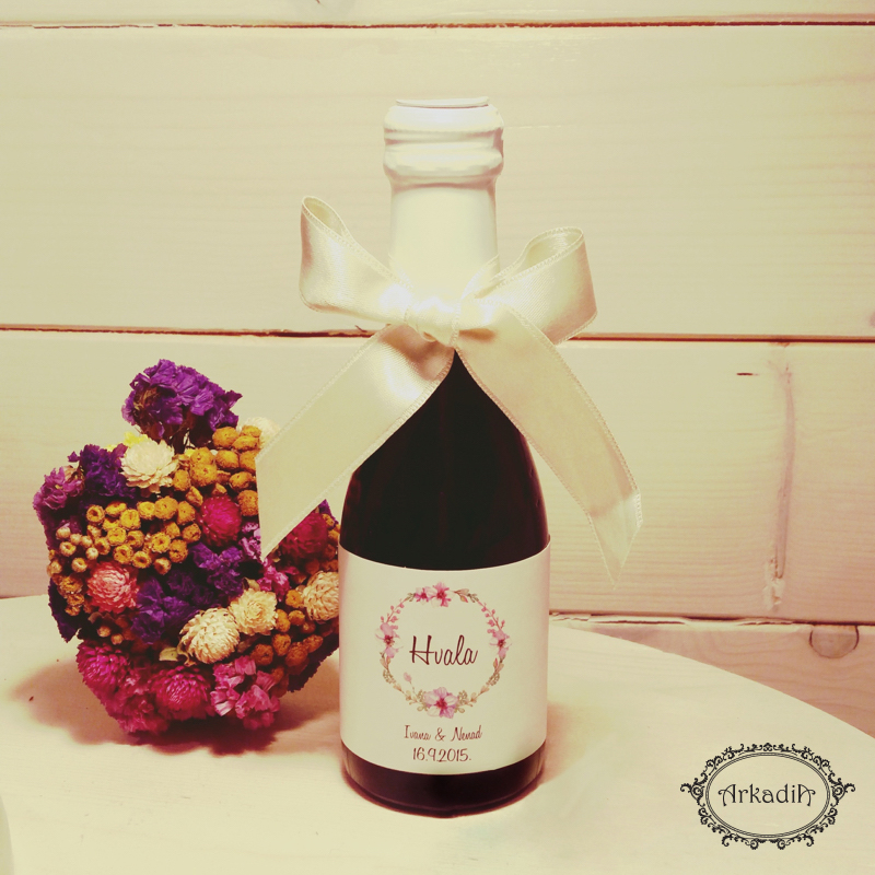 • vino 0.178 l sa širokom satenskom masnom i sa štampom po želji. Možete birati boju trake.