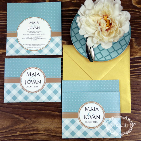• pozivnica formata 15x15cm, specijalni sedefasti papir 300g, obostrana stampa