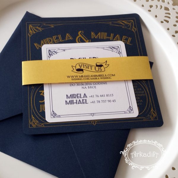 •  pozivnica formata 15x15cm, specijalni sedefasti papir 300g, obostrana stampa