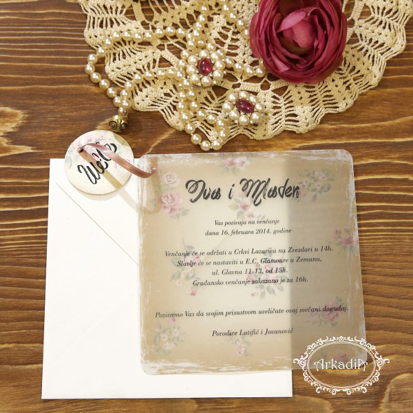 •  pozivnica formata 15x15cm, specijalni sedefasti papir 300g