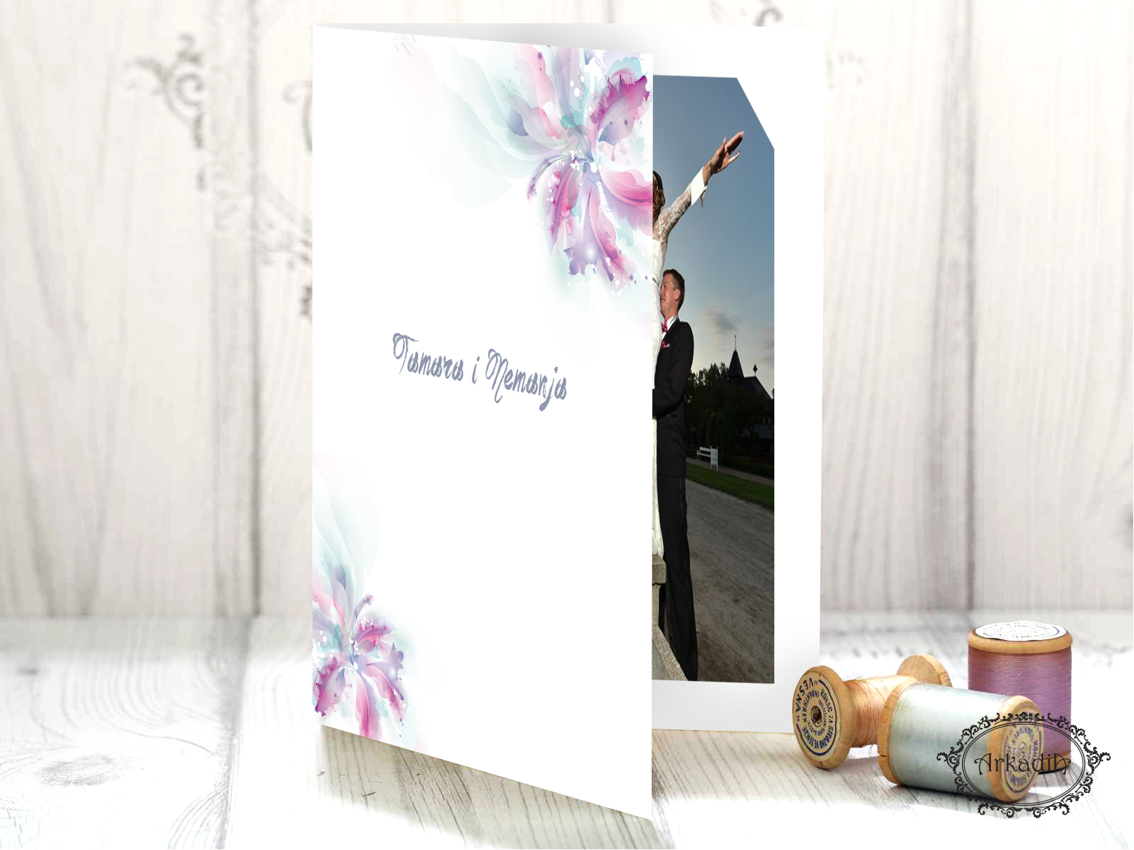 • format 29.7x21cm, jednostrana štampa, savijanje na pola, prosecanje proreza za fotografiju