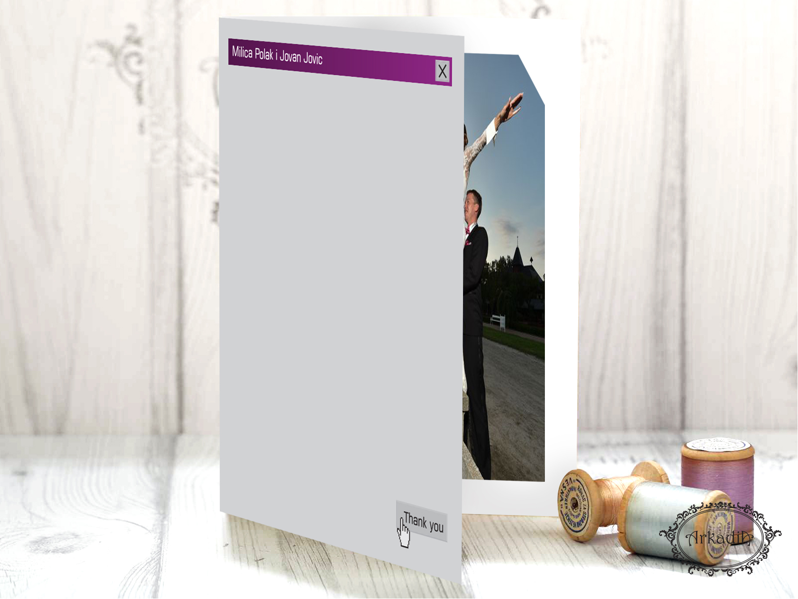 • format 29.7x21cm, jednostrana štampa, savijanje na pola, prosecanje proreza za fotografiju